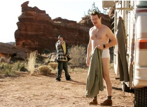 Breaking Bad starts off with Walter White’s pants floating in the air. Walter, without pants (or shirt) and wearing a respirator, is recklessly driving an RV with three bodies inside. One also sports a respirator. Two are face down on the floor.