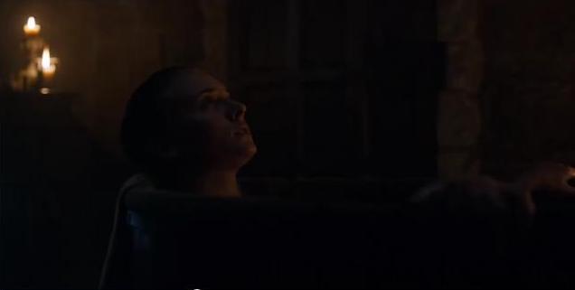 Sansa, looking like she’s trying to de-stress in a tub and not succeeding.
