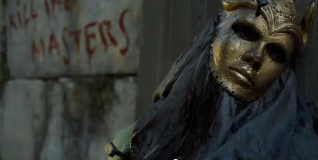 Someone with a golden mask NAILED to their head. The graffitti on the wall implies this is in Meereen.