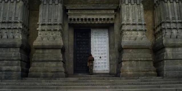 The Great Harpy atop the great Pyramid of Meereen is torn down, dramatically. Boom.