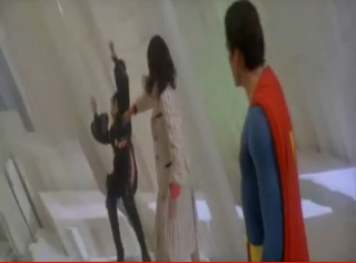Lois turns on Ursa and after uttering a rather banal quip, slugs the femme fatale, causing Ursa to tumble towards the same shrouded doom as her companions.