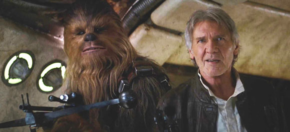 Most images from The Force Awakens, obviously. Rathtar artwork is production artwork for the movie. Shot of Han, Leia, and Luke is from Return of the Jedi. Smug Chewbacca is from the original Star Wars movie.